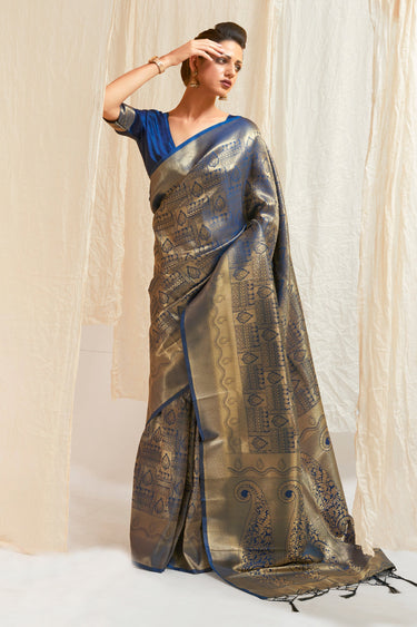 Blue Color Brilliant Handloom Zari Weaving Silk Saree In With Kanjivaram Blouse
