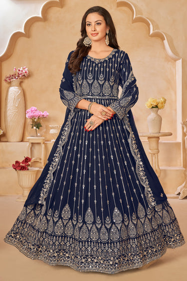 Blue Color Embroidered Long Anarkali Suit In Georgette Fabric