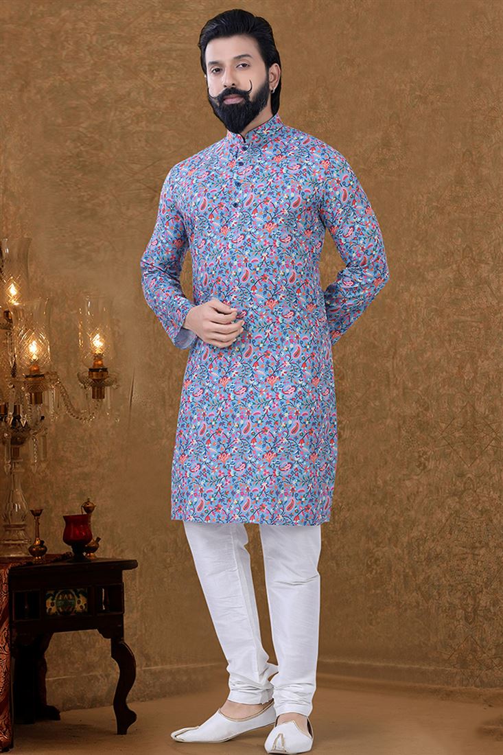 Blue Color Ethnic Wear Cotton Fabric Charismatic Kurta Pyjama