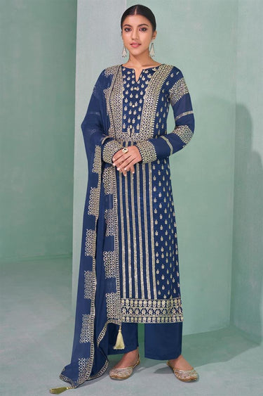 Blue Color Georgette Fabric Embroidered Tempting Palazzo Suit