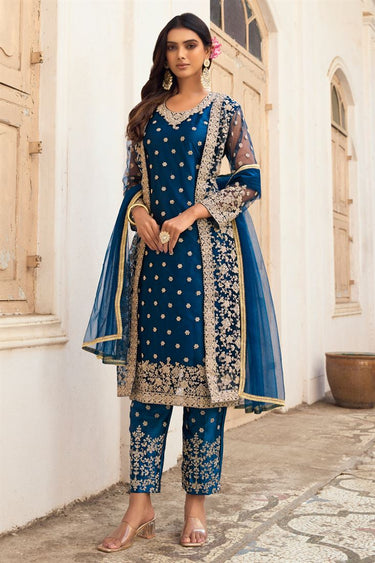 Blue Color Net Fabric Party Look Tempting Salwar Suit
