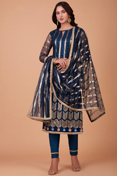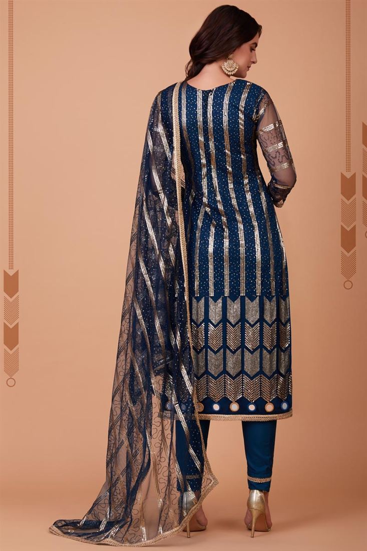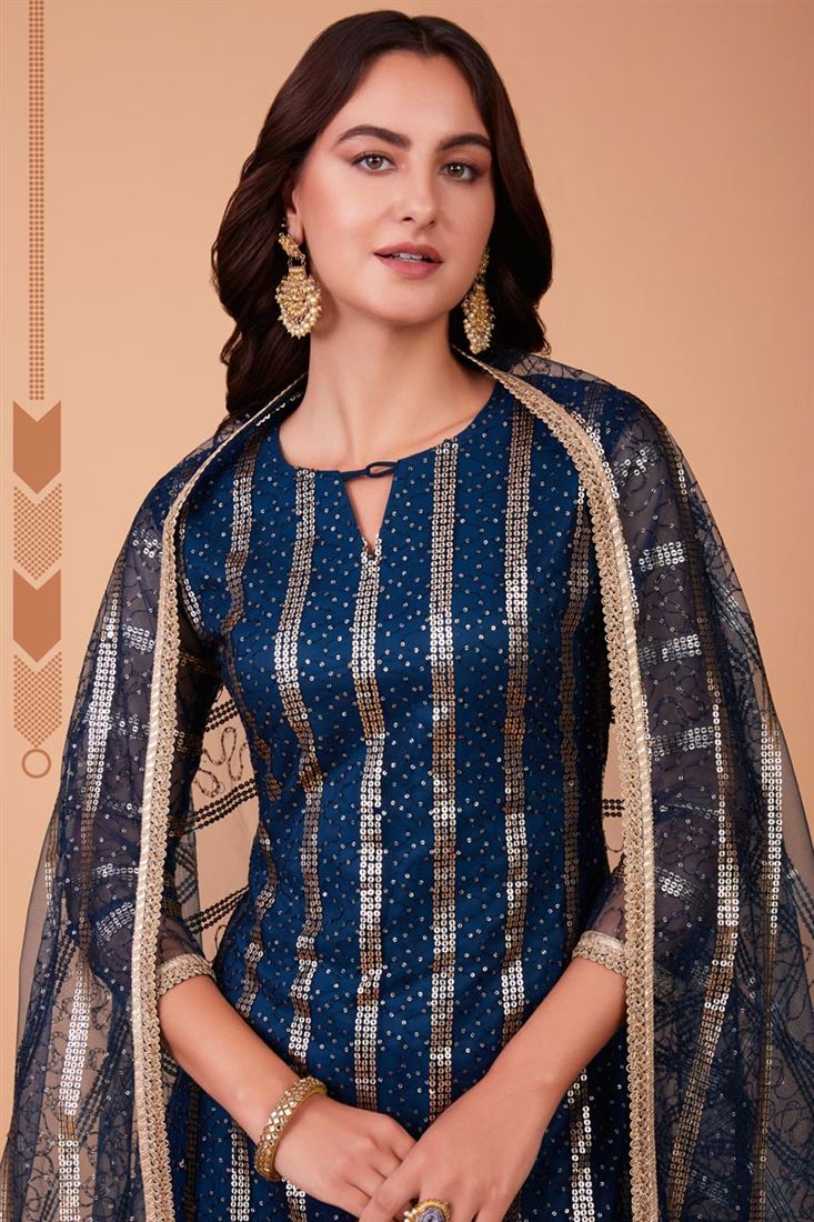 Blue Color Net Fabric Tempting Function Style Salwar Suit