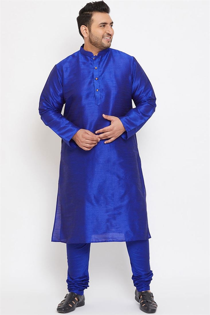 Blue Color On Dhupion Silk Fabric Sangeet Wear Plus Size Kurta Pyjama