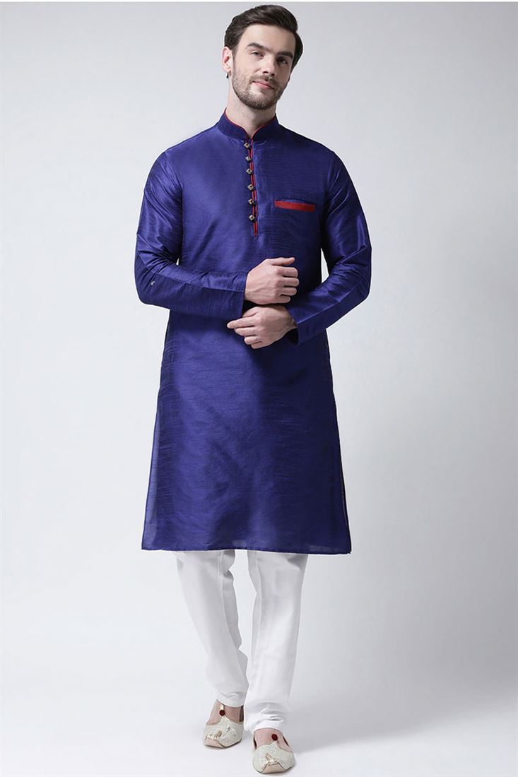 Blue Color Sangeet Wear Alluring Kurta Pyjama In Dhupion Silk Fabric