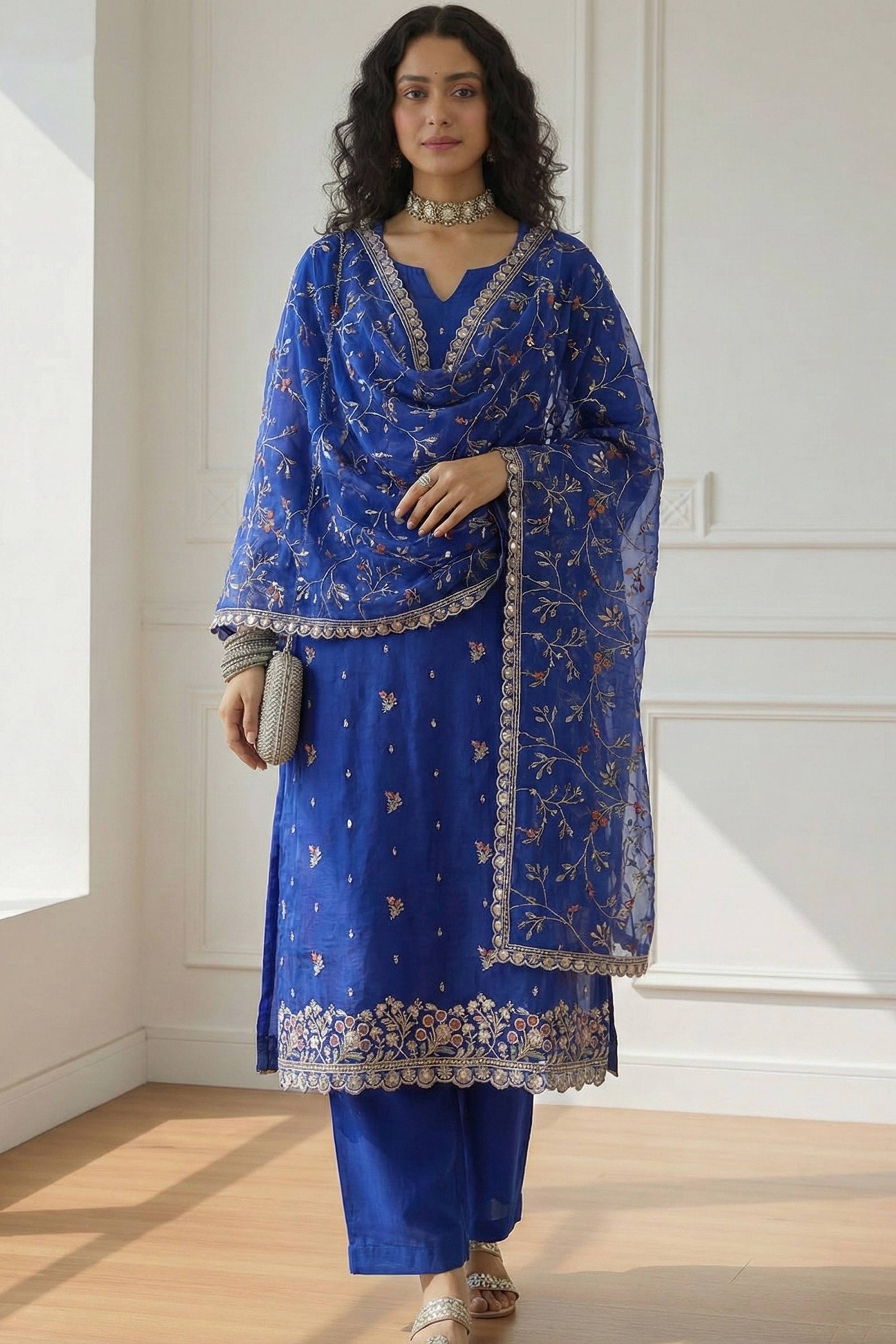 Blue Function Wear Organza Embroidered Readymade Designer Salwar Suit