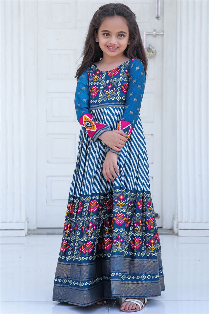 Blue Function Wear Pashmina Silk Patola Foil Printed Kid S Gown