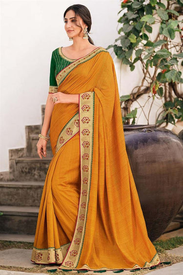 Border Work On Mustard Color Art Silk Fabric Festival Wear Engrossing Saree