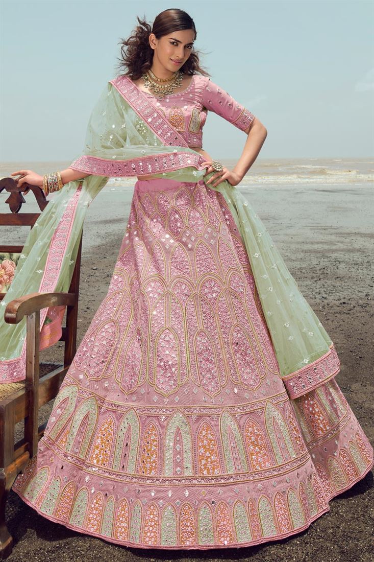 Brilliant Organza Fabric Embroidered Lehenga In Pink Color