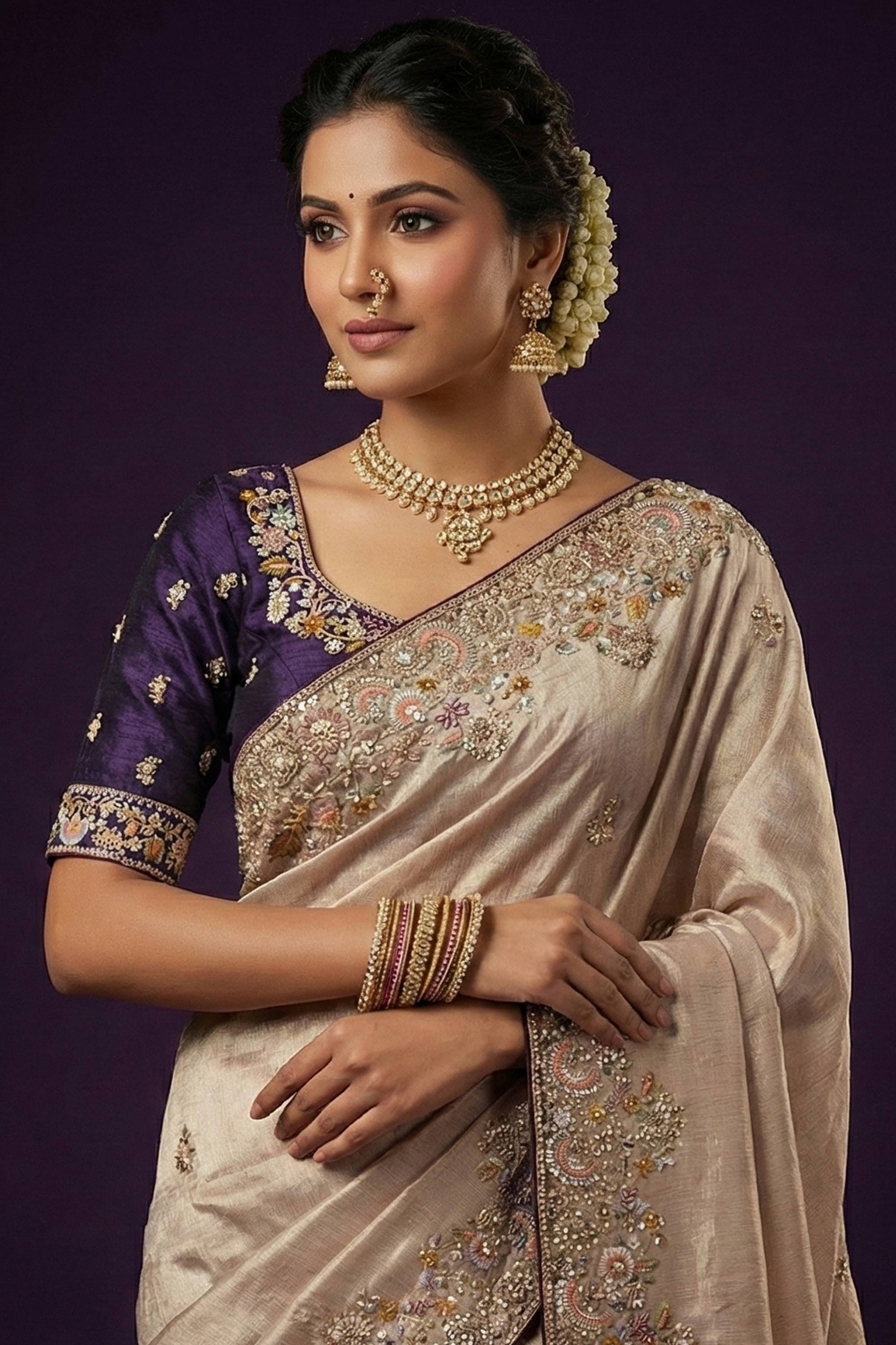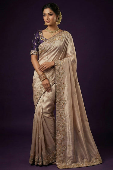 Brown Festive Wear Tissue Silk Embroidered Saree