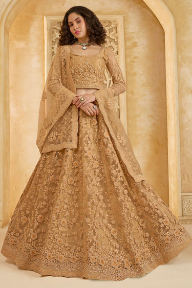 Step into elegance with our designer lehenga choli, perfect for your wedding day. Made with high-quality net and silk, both the lehenga and blouse boast intricate embroidery. The set is completed with a matching net dupatta, adding a touch of sophistication. Available in semi-stitched form, it offers customization to achieve your ideal fit. Part of our exclusive bridal collection, this lehenga choli will make you the center of attention at any event.