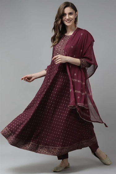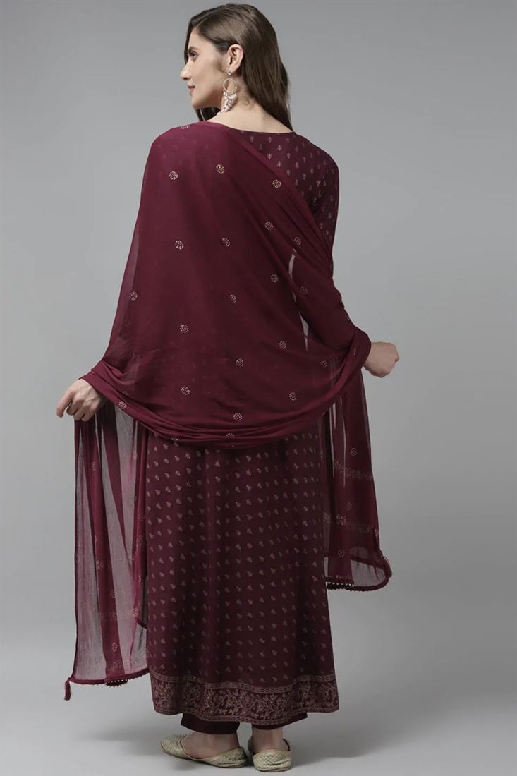 Burgundy Color Admirable Top Bottom Dupatta Set In Rayon Fabric