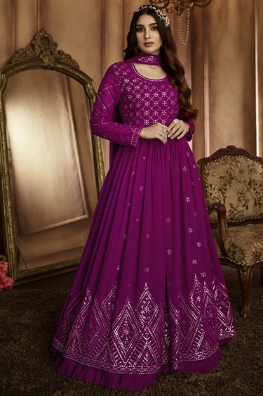 Captivating Georgette Fabric Party Style Purple Color Anarkali Suit