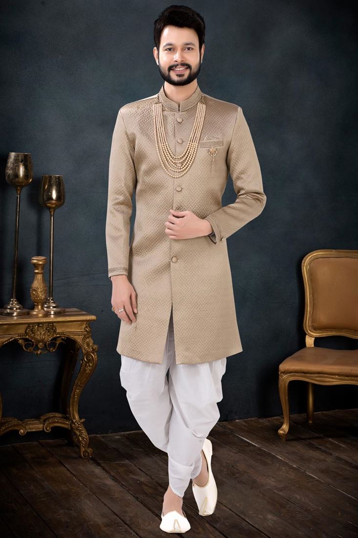Captivating Jacquard Fabric Indo Western In Chikoo Color