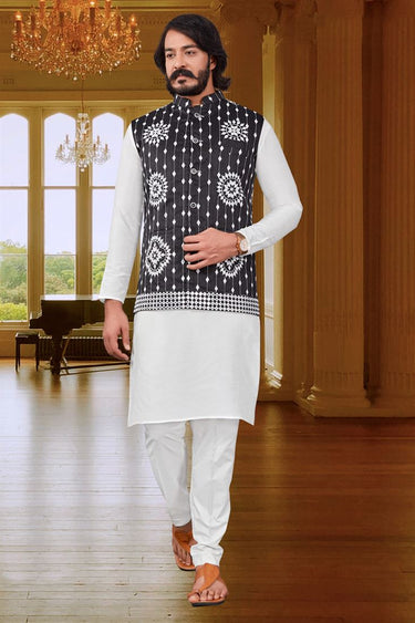 Captivating White Color Art Silk Fabric Wedding Wear Readymade Kurta Pyjama With Fancy Jacket