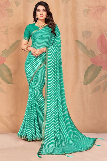 Casual Look Trendy Sea Green Color Saree In Chiffon Fabric