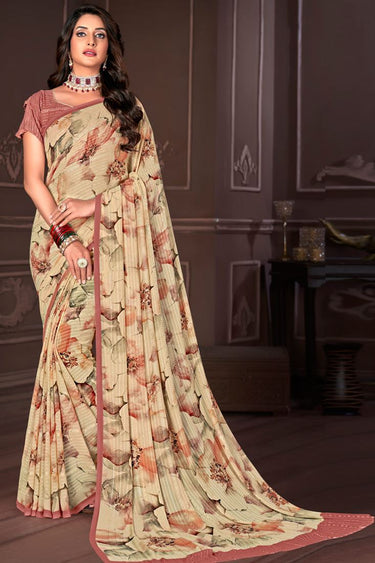 Casual Wear Beige Color Brilliant Digital Printed Saree In Georgette Fabric