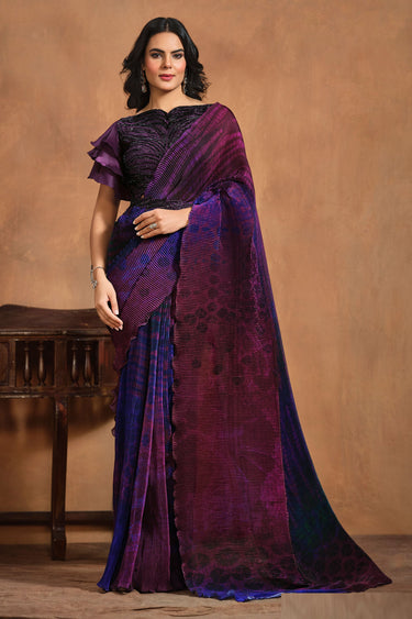 Champagne Purple Ombre Ready To Wear Digital Printed Saree