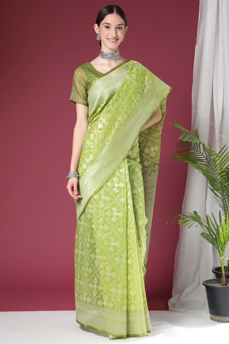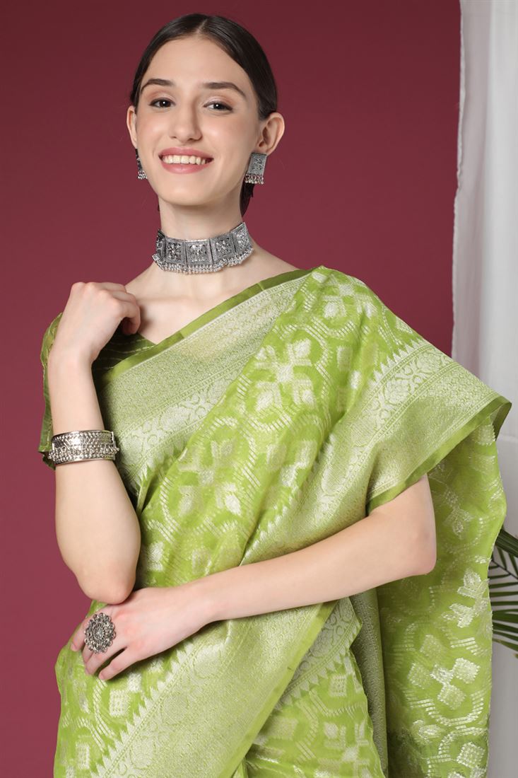Charming Green Color Organza Fabric Saree With Weaving Work