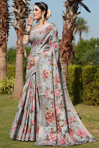 Charming Grey Color Cotton Silk Fabric Festive Look Saree