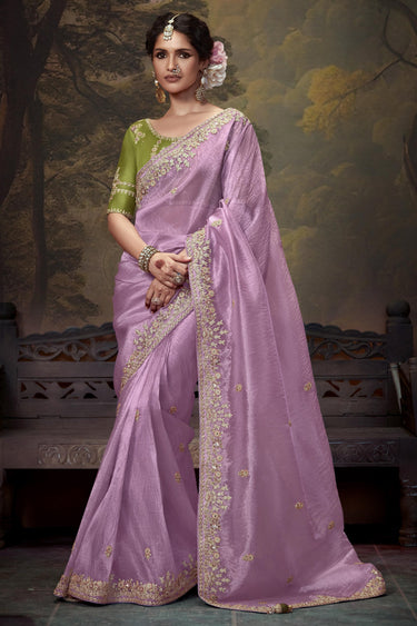 Charming Lavender Silk Festive Saree With Embroidered Border