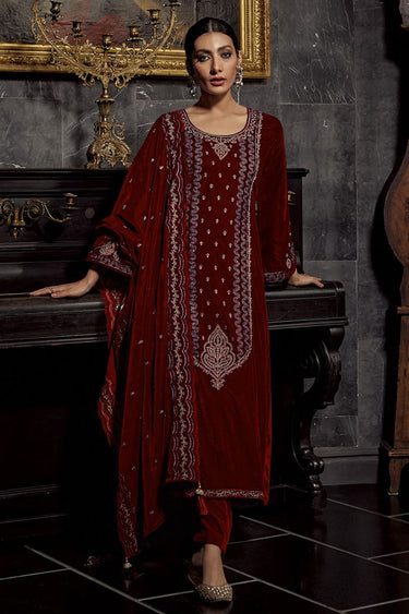 Charming Maroon Color Party Look Velvet Salwar Suit