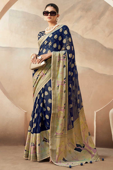 Charming Navy Blue Color Georgette Fabric Saree With Printed Work