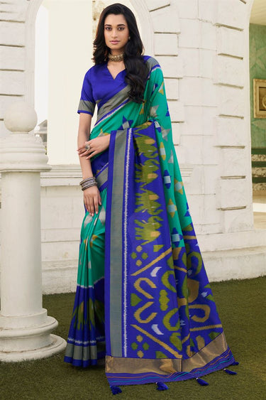 Charming Sea Green Color Patola Art Silk Digital Printed Saree