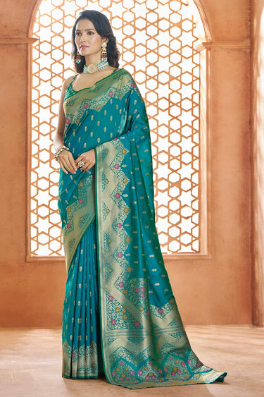 Charming Teal Color Banarasi Silk Saree With Weaving Work