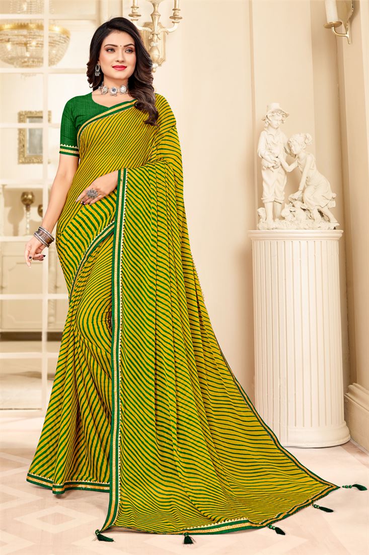 Charming Yellow Color Chiffon Fabric Casual Wear Saree