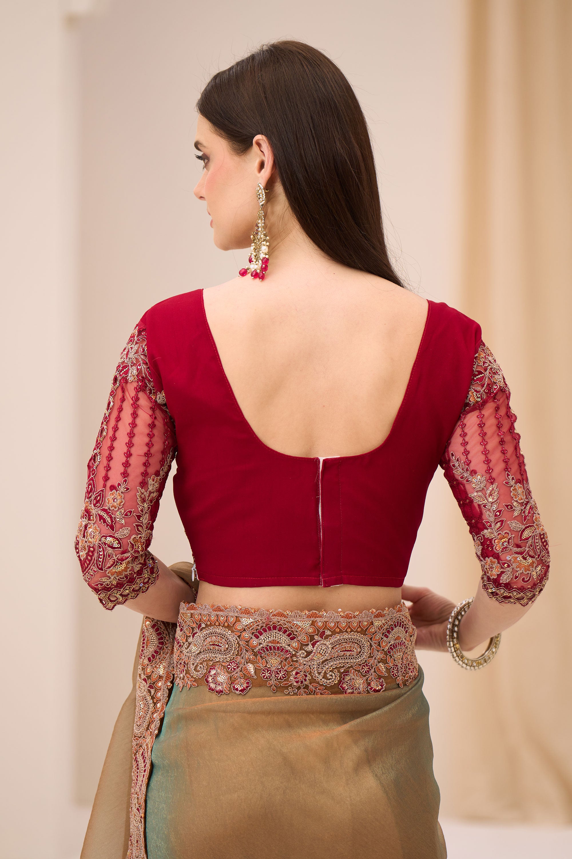 In case it is found on examination of product/invoice/order receipt that the error has occurred due to customer, then SareesBazaar shall make the necessary modifications/alternations, AT THE COST OF THE CUSTOMER. In the rare circumstances when the original fabric is unavailable for purpose of such alterations/modifications, SareesBazaar may use plain fabric of the same color. CUSTOMER MAY HAVE TO BEAR THE COST OF SUCH REPLACEMENT FABRIC IN SUCH RARE CASES.