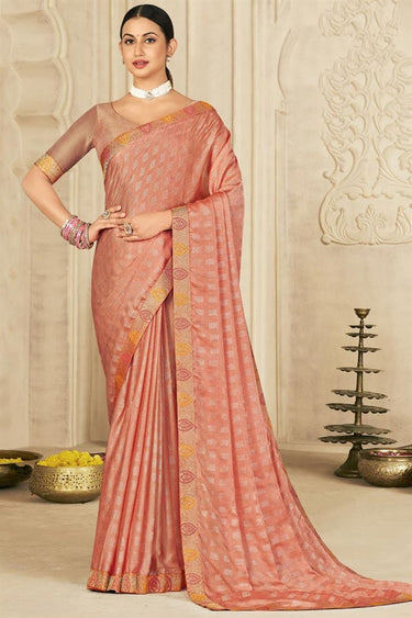 Chiffon Fabric Bewitching Foil Printed Saree In Peach Color