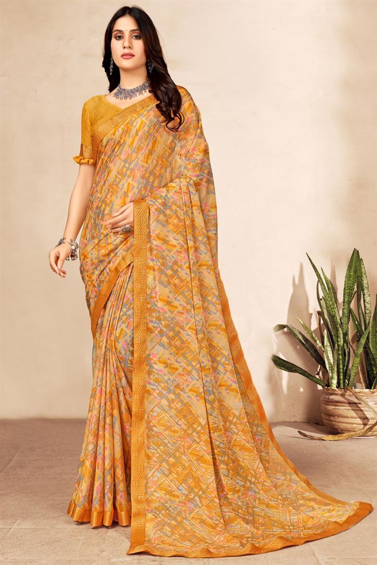 Chiffon Fabric Casual Look Superior Saree In Peach Color