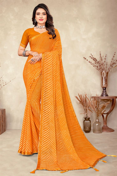 Chiffon Fabric Printed Work On Soothing Saree Mustard Color