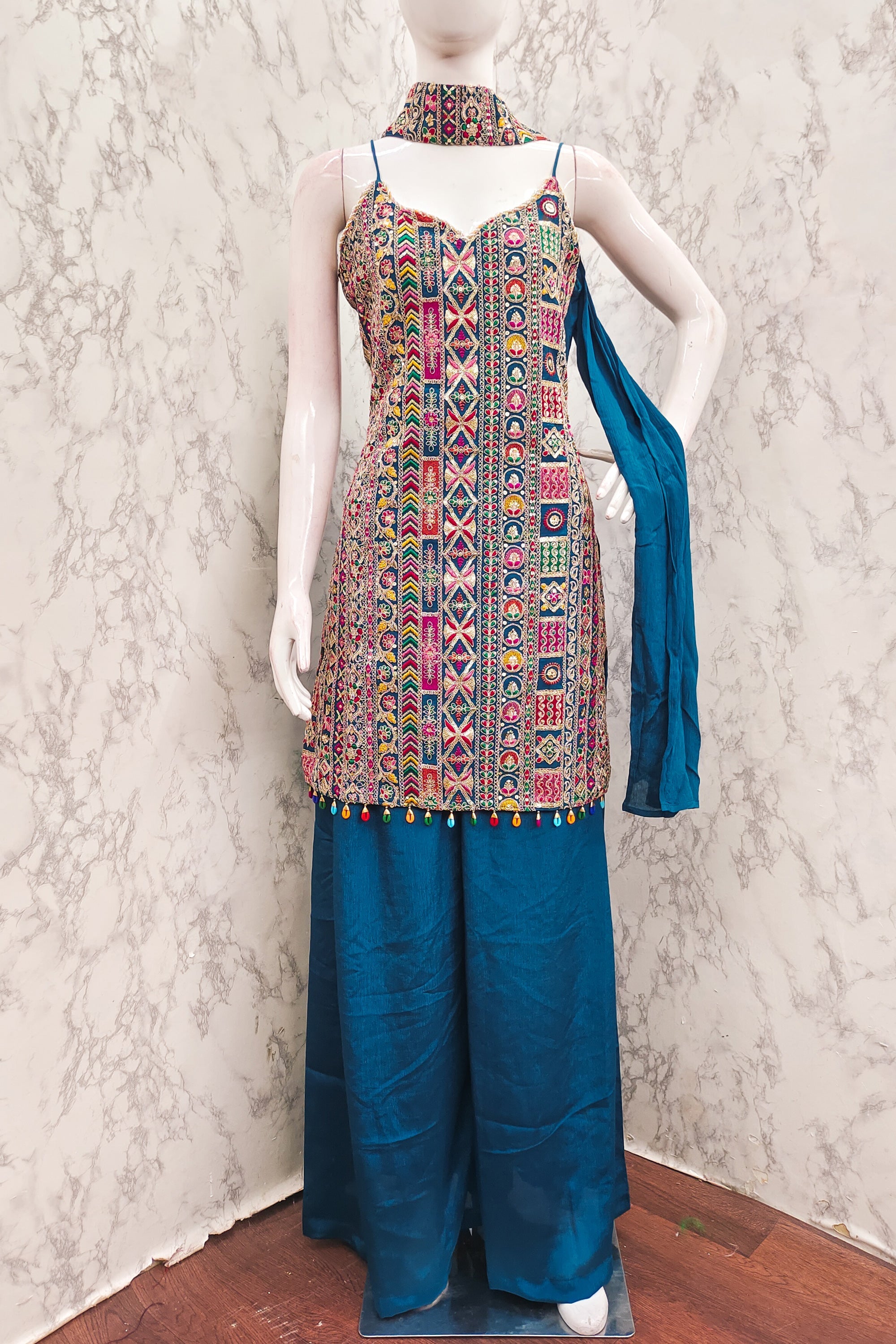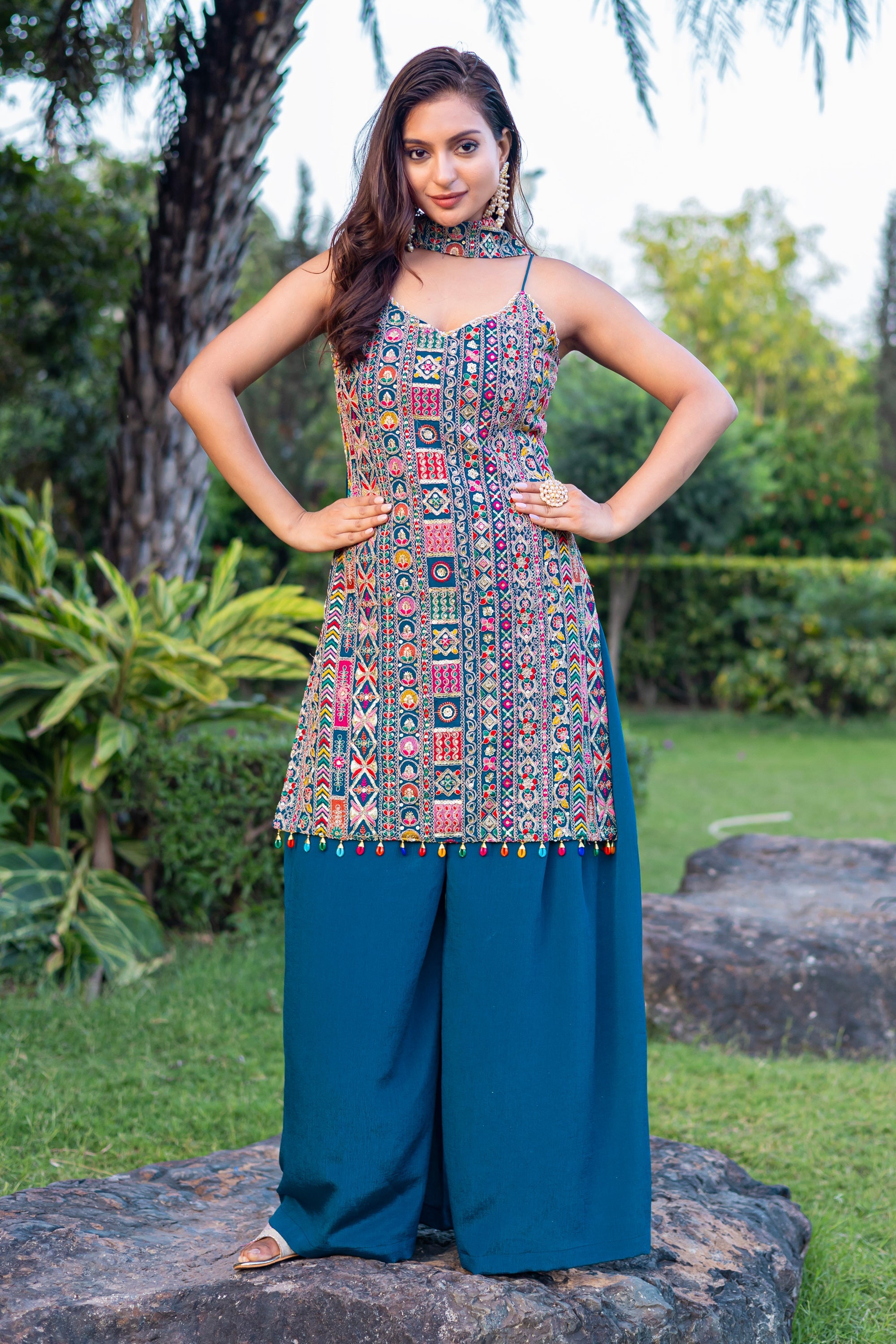 Chinon Embroidered Teal Readymade Palazzo Salwar Suit