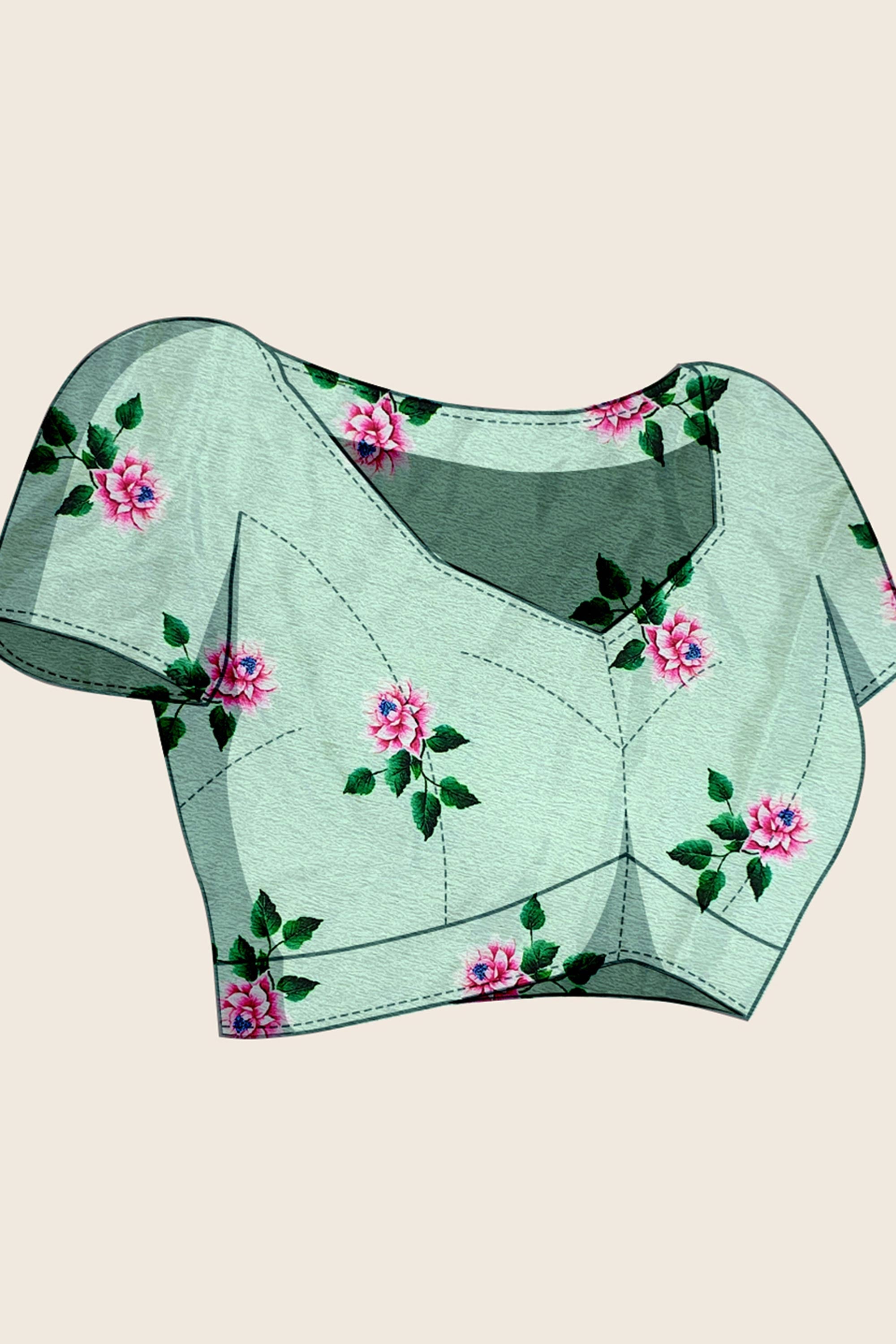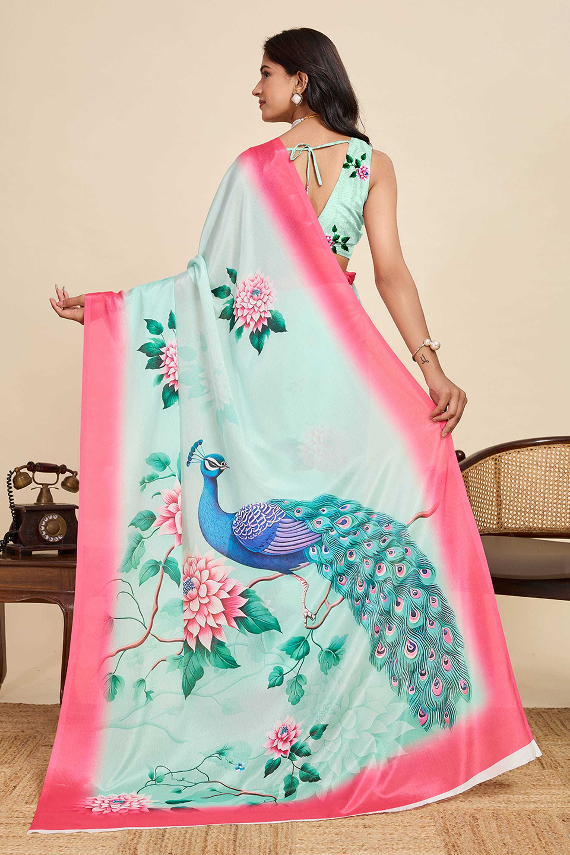 Chinon Fabric Light Cyan Saree For Casual Wear
