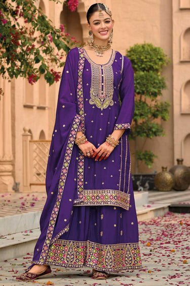 Chinon Fabric Purple Color Beatific Look Palazzo Suit