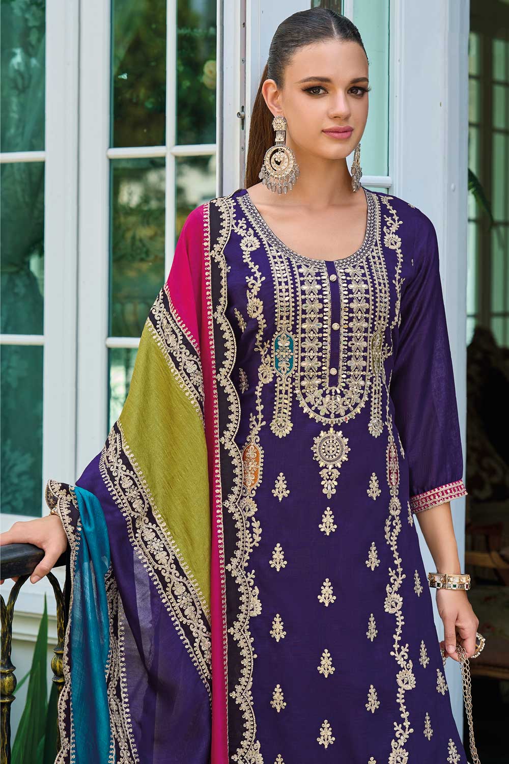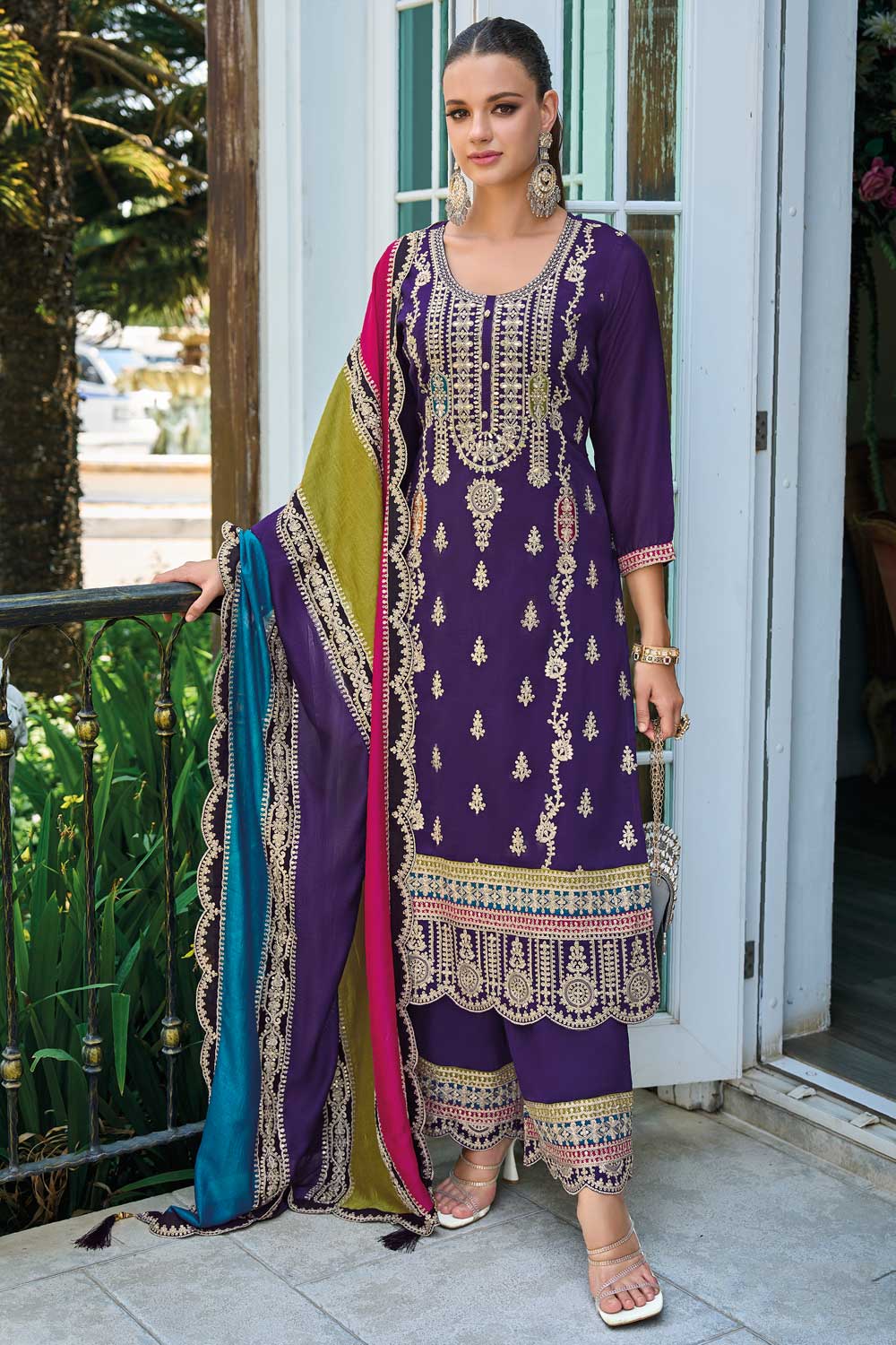 Chinon Fabric Purple Color Pleasance Palazzo Suit
