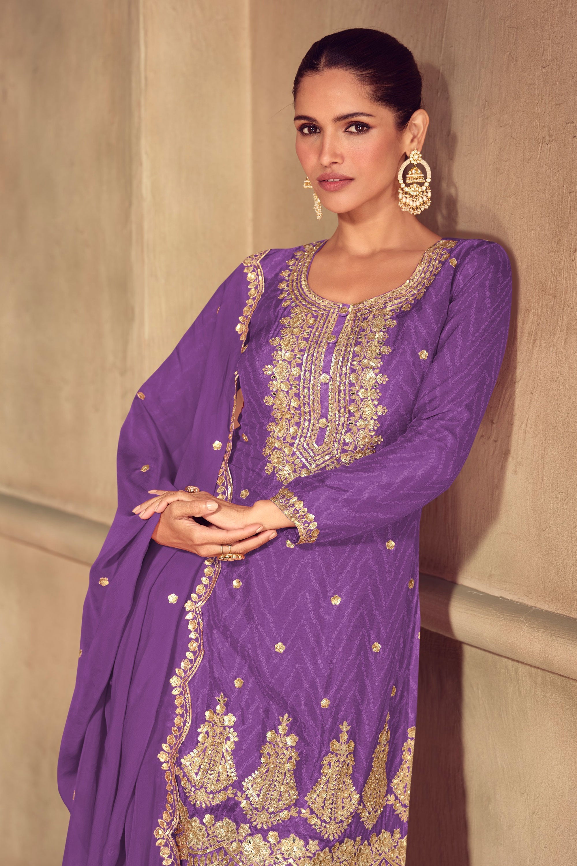 Chinon Purple Embroidered Readymade Palazzo Dress