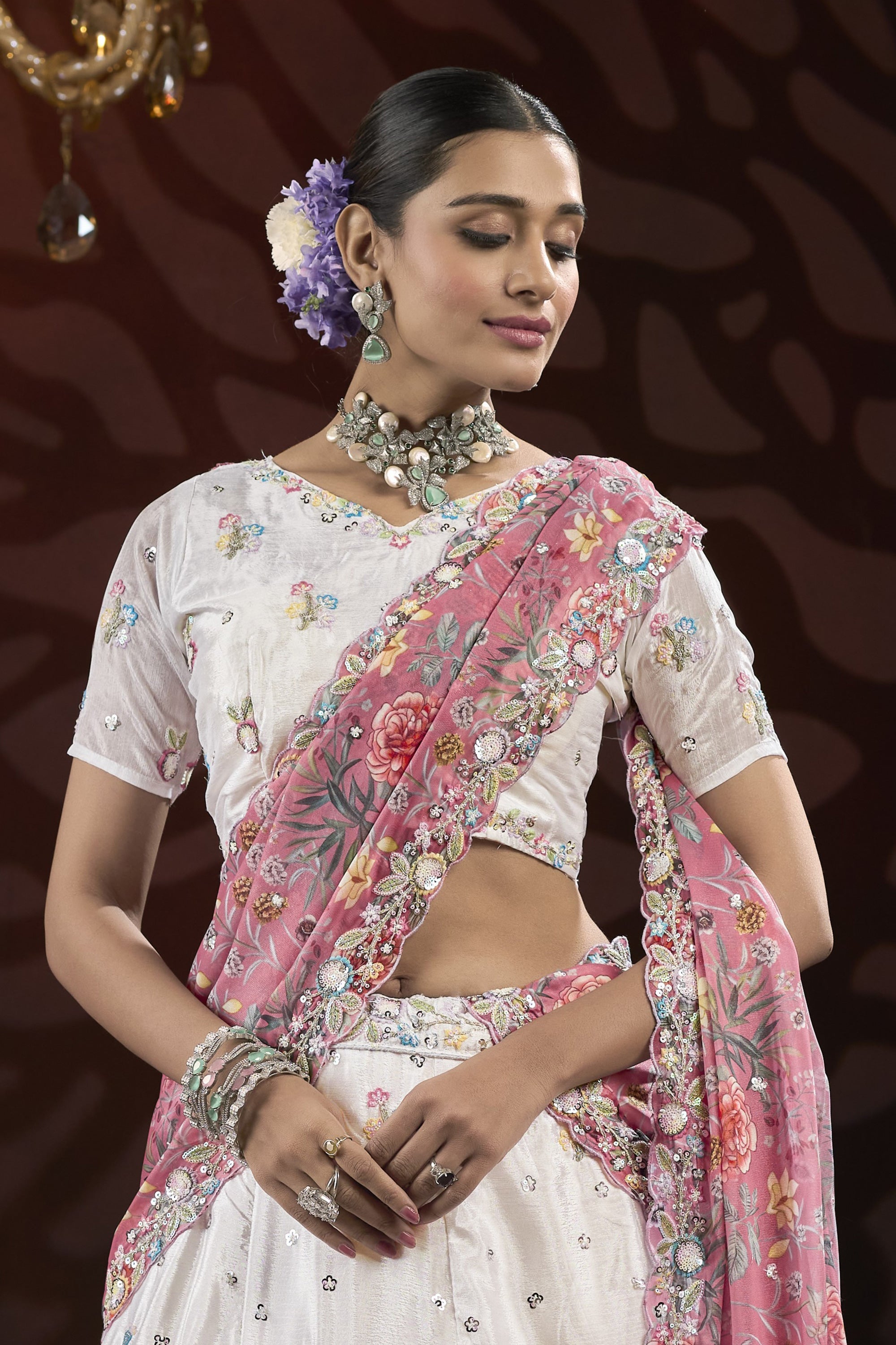 Discover the perfect blend of tradition and elegance with the Reach Color Designer Sangeet Wear Lehenga Choli. Crafted from high-quality Chinon fabric, this lehenga choli is adorned with dazzling sequins work, making it a show-stopper for any special occasion. Ideal for sangeet functions and weddings, the lightweight fabric provides comfort without compromising on style. The meticulously crafted sequins reflect light beautifully, ensuring you stand out in any crowd. Available in multiple sizes to fit every silhouette.