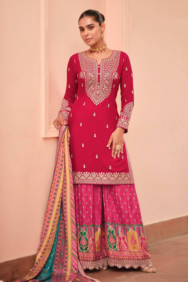 Chinon Silk Embroidered Rani Readymade Palazzo Suit For Wedding Wear