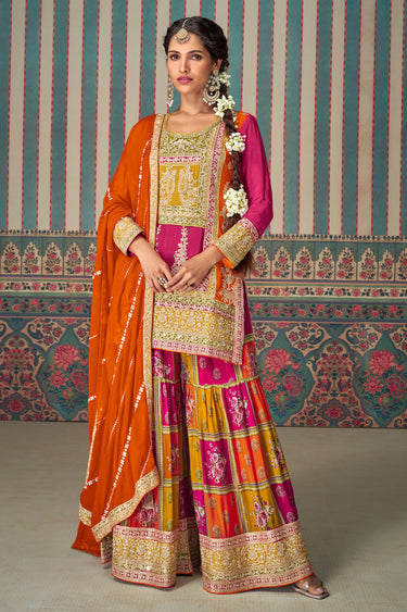 Chinon Silk Embroidered Readymade Sharara Style Palazzo Salwar Suit