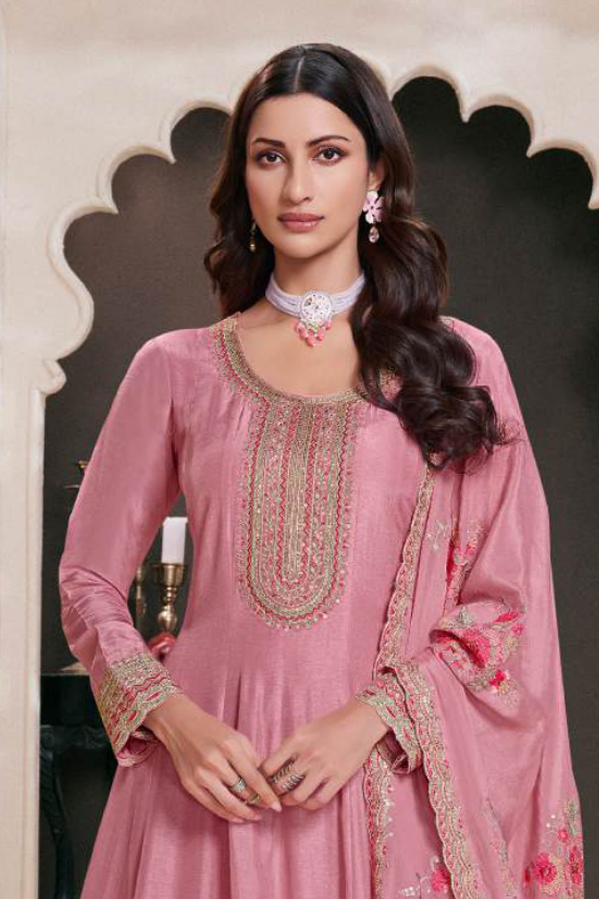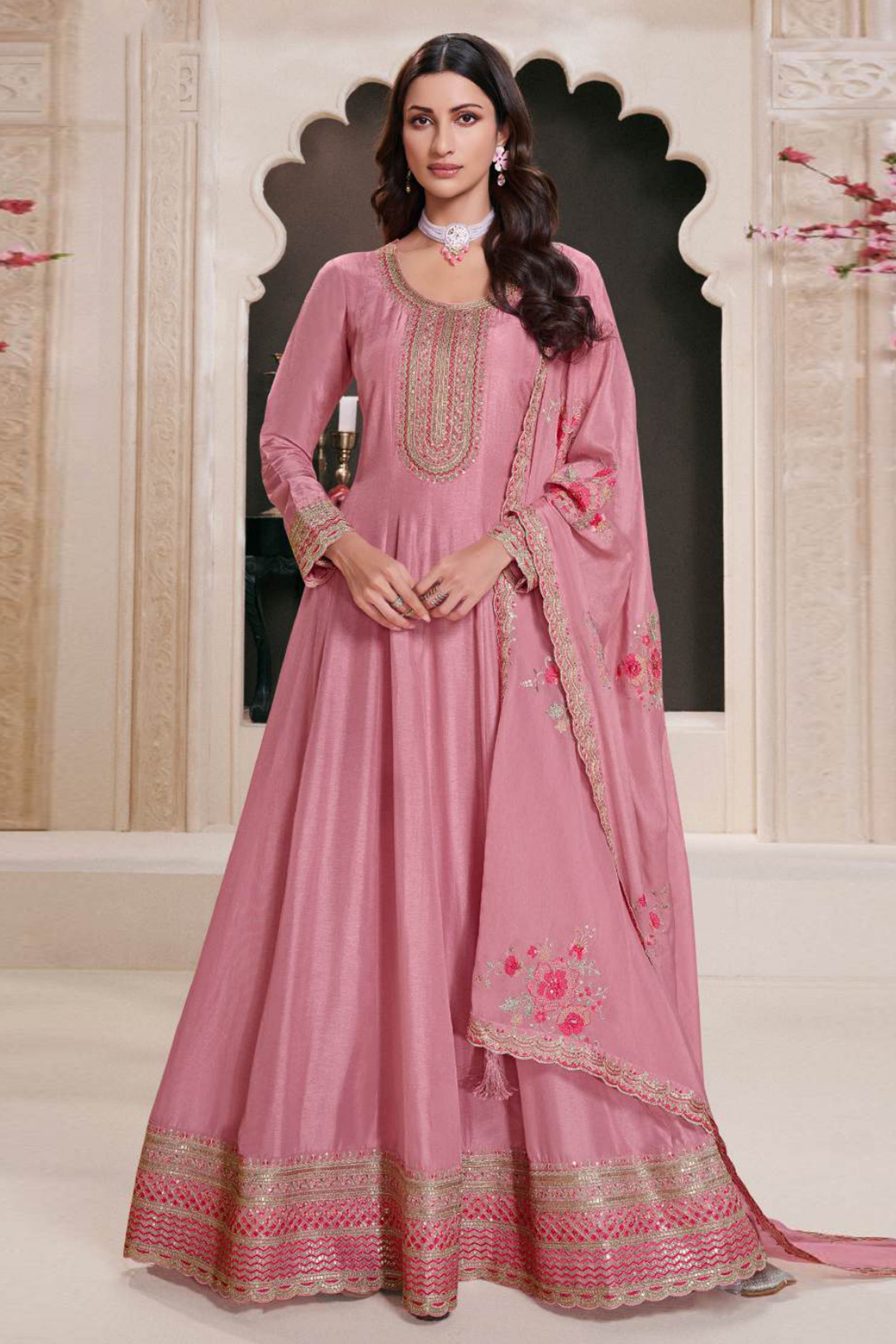Classic Pink Color Art Silk Function Wear Floor Length Anarkali Salwar Kameez