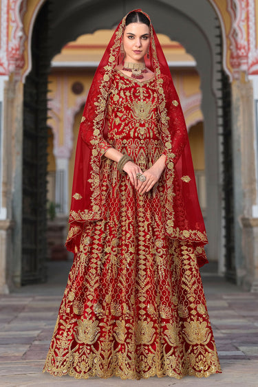 Classic Red Color Net Function Wear Floor Length Anarkali Salwar Kameez