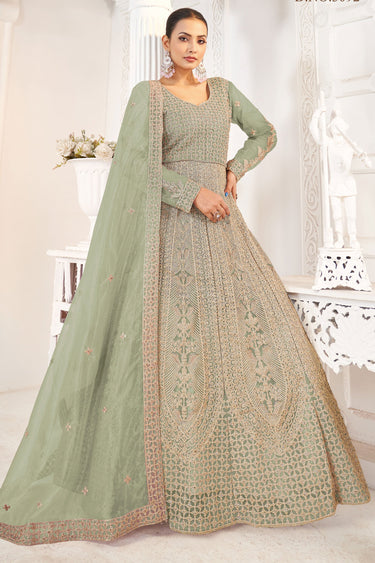 Classic Sea Green Color Net Function Wear Floor Length Anarkali Salwar Kameez