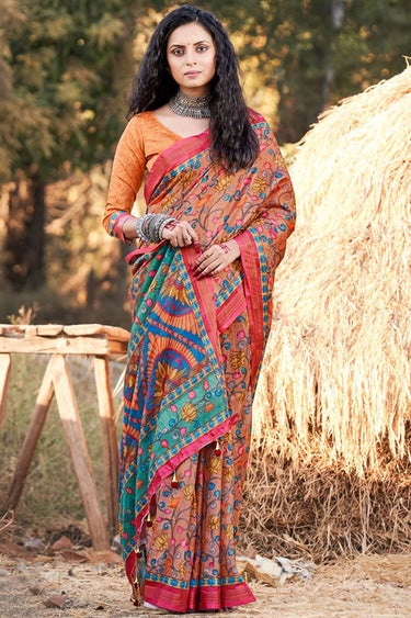 Cotton Fabric Chic Printed Casual Orange Color Saree