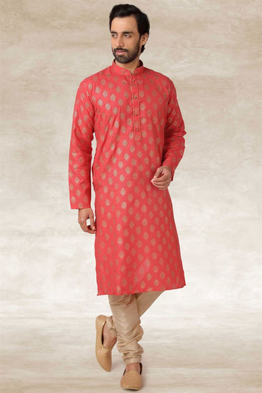Cotton Fabric Festival Wear Pink Color Attractive Stright Kurta Pyjama
