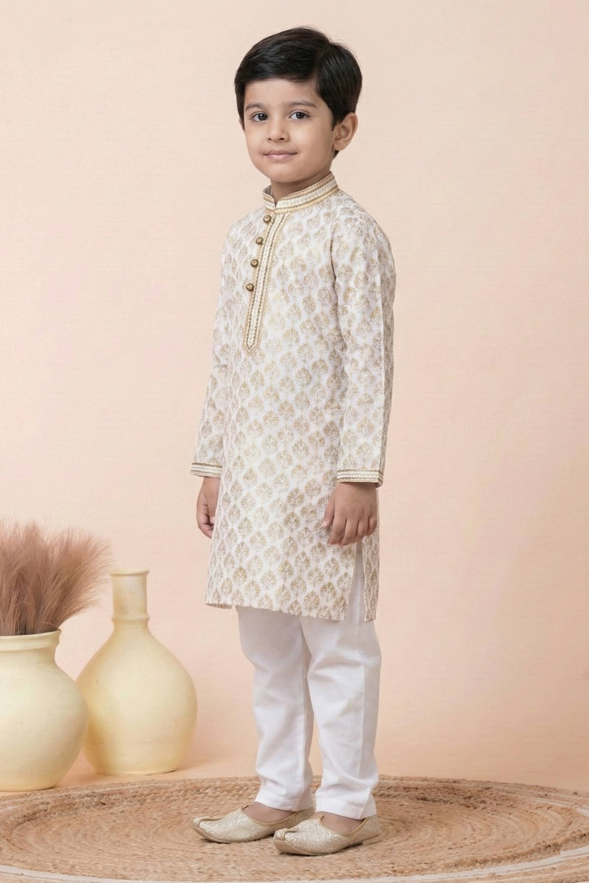 Cotton White Festive Wear Readymade Kurta Pyjama For Boys