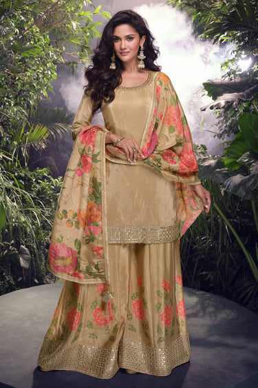 Cream Chinon Embroidered Fancy Readymade Palazzo Dress