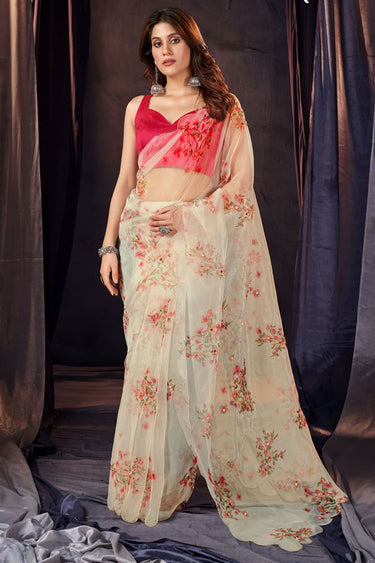 Cream Color Beauteous Digital Printed Work Organza Saree