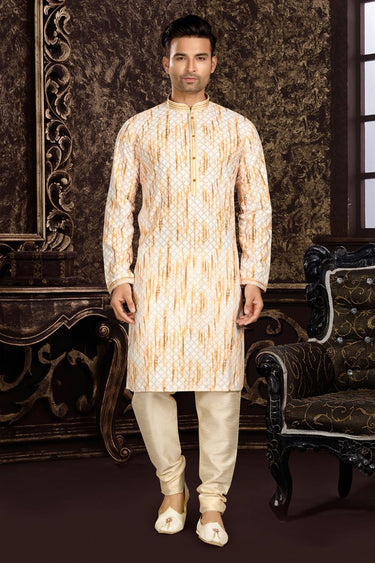 Cream Color Cotton Printed Readymade Lovely Kurta For Men